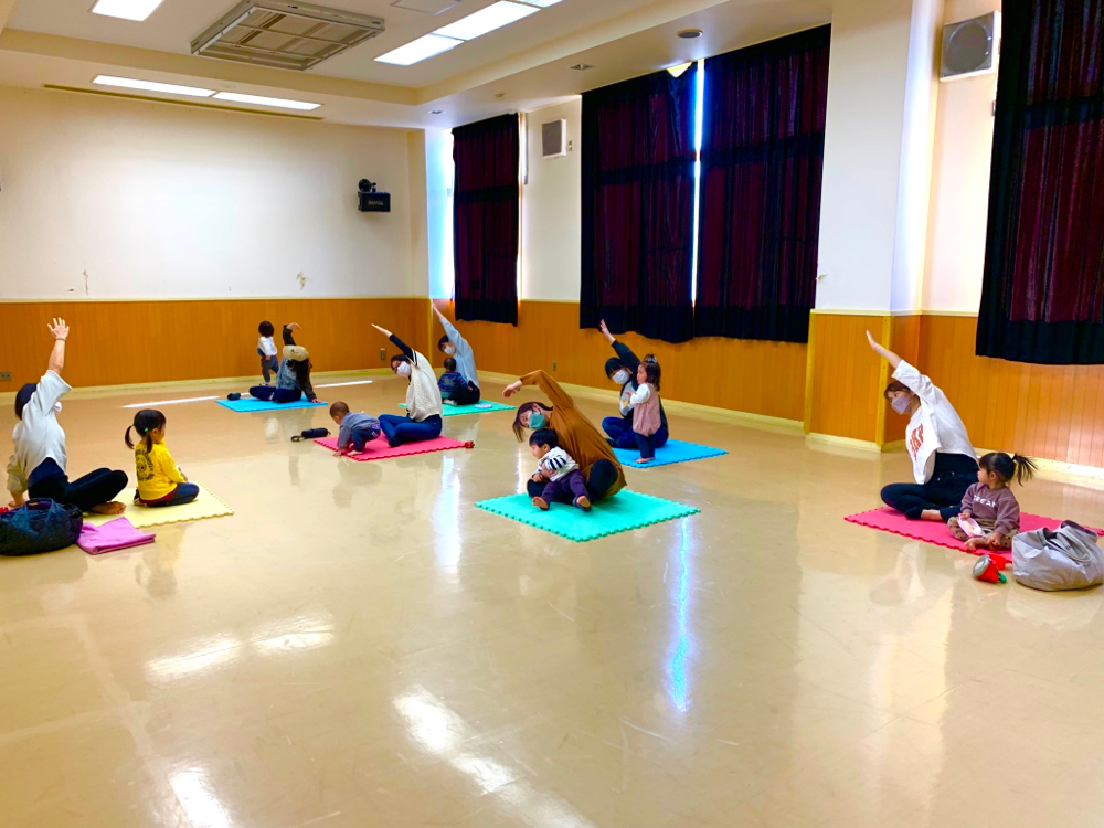 講師さんはゆっくりと呼吸をしていってくださいと呼吸を整えながらヨガのポーズを進めていかれました。いろいろなヨガのポーズをしました。 ほんの少しの時間でしたがママ達のリラックスタイムになりましたでしょうか?最後はヨガをしたご自身の身体に『ありがとう』と伝えて終了しました。みなさまお疲れ様でした!(^^)