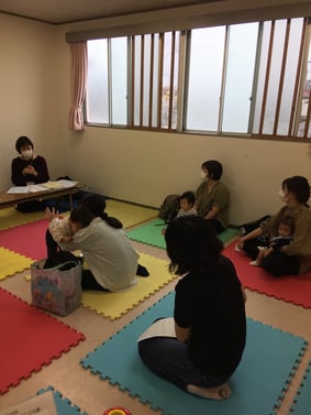 区役所から保健士さんがいらしてオムツ外しについてお話ししていただきました。講座の後も部屋を回っての個別トークタイムで皆さんちょっとした相談ができたようで良かったです。(しげ)