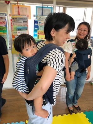 おんぶの仕方も見てほしいという方もいらしたので、みんなで、おんぶ位置も確認。