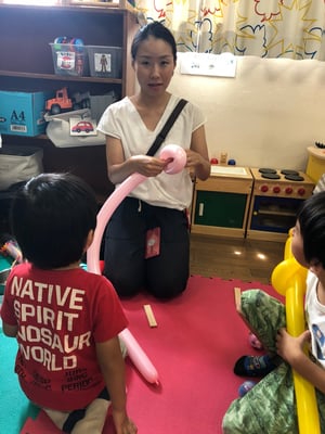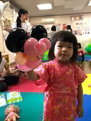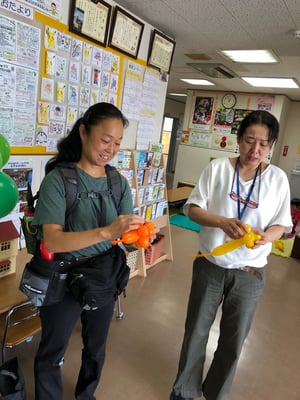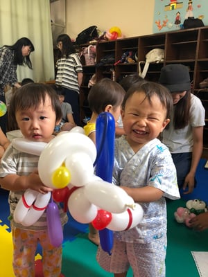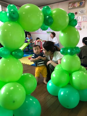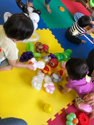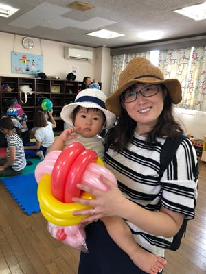 バルーンは、しぼくち利用者さんのママお二人と、そのお二人が師匠と呼ぶUさんと3人が、お子様おひとりにつき1つのバルーンアートをプレゼントしてくださいました。