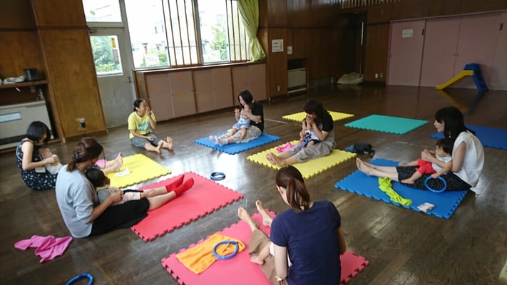始めに、お母さんから子育ての悩みなどきいてから、その悩みを解消するのに効果的な体操を教えてくれました。先生からは、裸足生活がおすすめですとの事です。