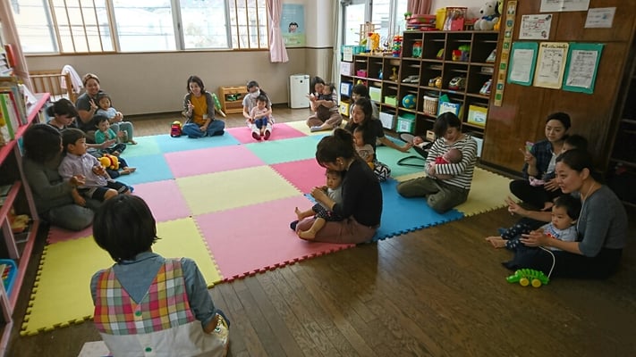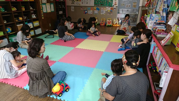 今日は過ごしやすい天気もあって、たくさんのお友達が来てくれました。最後に「は〜い」の紙芝居を読んで、みんな元気にお返事してくれました!!