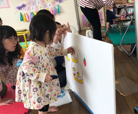 新年度になり、しぼくちのお誕生会は、ウォールデコも刷新。