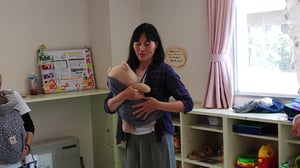 本日は皆さん興味あると思われる「抱っこ&おんぶひものつけ方講習会」でした。講師は満のメンバーでもある河村まりこさん。