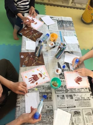 利用者の坪井さんによる、大好評の手形アートイベント。