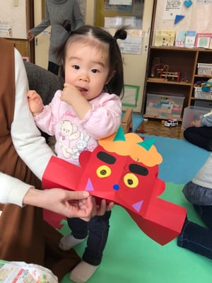今月は節分に向けて鬼のお面を作りました。