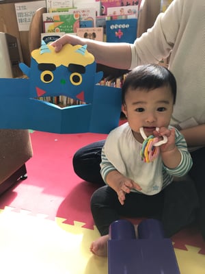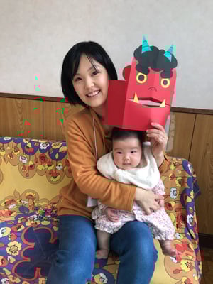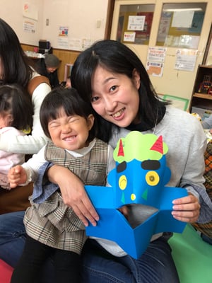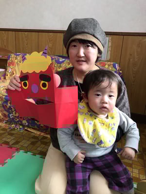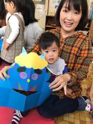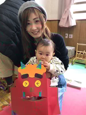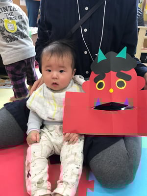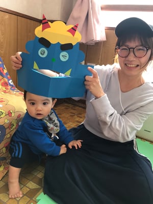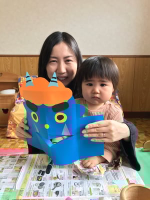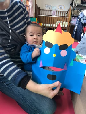 節分の日にはお面として使う他に、立てて的当てにしたり、開いたお口にあーんと食べ物をあげて遊んだり、楽しんでいただけると嬉しいです。
