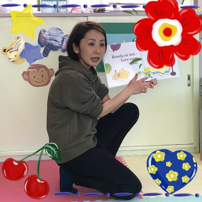 大西先生の楽しい英語の歌とダンスに、お友だちも皆笑顔がはじけました。流暢な「♪Happy birthday」はとっても素敵でした。