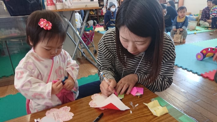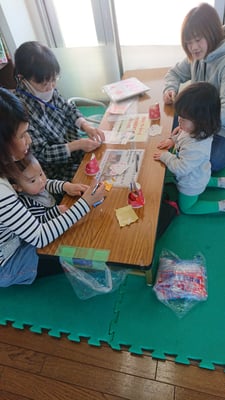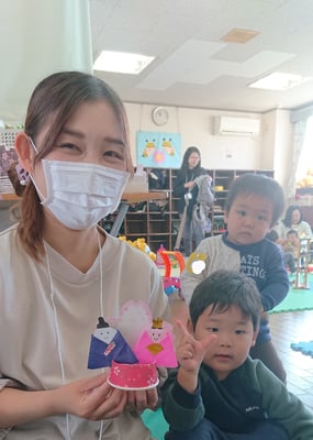 2月のお楽しみタイムはお雛さまを作りました。 いつもは作りながら「お雛様飾ってる~?桃の節句なにする?」ってお喋りするのに、 今年は自然と「マスク手に入らないね」「外出控えてる?」なんて話題に。 この後、半月ほど支援センターのイベントを控える事が決まりました。 早く安心して子どもが遊べる状況になりますように!(しげ)
