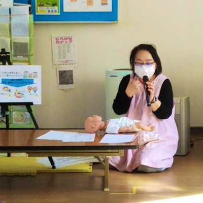 今日は高津区役所の看護師さんによる「ケガや病気の対応について」のミニ講座でした。講座は『お家の見取り図』のパネルを見ながら、どんな所に気をつけたら良いでしょうか?というママ達も一緒に考えるスタイルから始まりました。お風呂場、ソファの上等の意見が出ました。それから頭を打った時の冷やし方、止血の仕方、火傷の時の冷やし方、熱の時の病院に行く目安等々とても具体的な対応のお話しをしてもらいました。中でも転んだりぶつけたりして前歯に血が滲んでいたら歯科医院の受診を勧められていたのは印象的でした。又、最後に赤ちゃんが喉に物を詰まらせた時の対処法、心配蘇生法をお人形を使って実践して見せてもらいました。こちらは動画を撮られるママ達もいました。