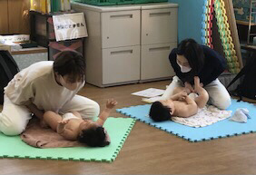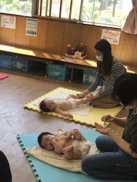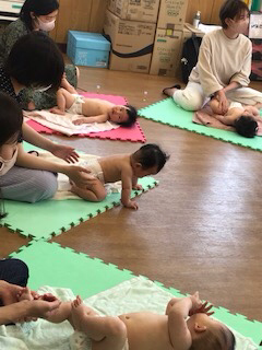 イベントの内容は、ベビーマッサージの齊藤先生にお越しいただき、基本的なマッサージを教えていただけるだけでなく、参加者さん同士の交流も図る人気のイベントです。