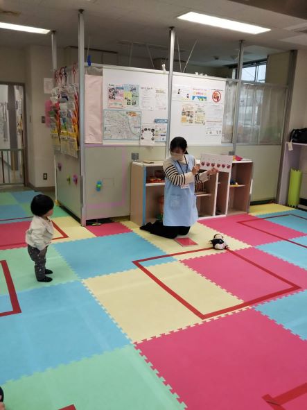 スタッフみゆきちゃん直伝の「物が無くても遊べるシリーズ」では「どっちの手に入っているかな?」「ハンカチ遊び」「指のお散歩」「こどものけんか」といった手遊び・ふれあい遊びを紹介。盛りだくさんな内容でした♪(はるみ)