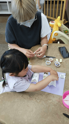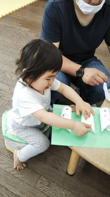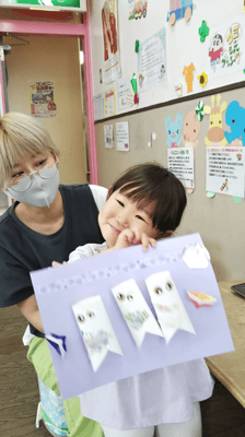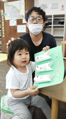 ママと一緒に、パパと一緒に、シ―ルを貼って、素敵なこいのぼりを作りました。