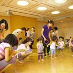 初めて参加した時は、ずっとコアラのように母から離れず、どうしたものかと思っていましたが、2回目は笑顔、笑顔で親子で取っても楽しかったです。なじみのある「アンパンマン」「ワンワン」の曲は自然と口ずさむことができました。「アンパンマンは君だ、ひゅひゅー♪」、家でも喜んでいます。「お母さんがまず楽しんでくれると子どもがまねをする」との岩野さんのお言葉通りでした。岩野さんの笑顔、最高!(H.Kさん)