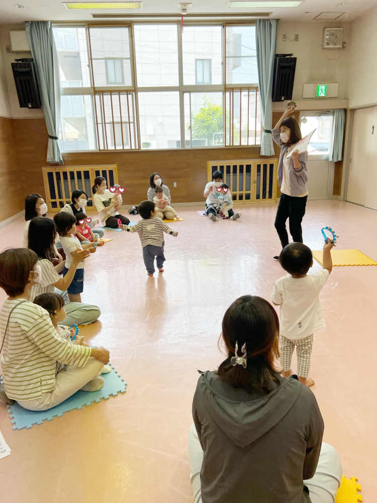 昼の12時を過ぎた頃、偶然4か月の女の子が3人揃いました。(写真は2人ですが)「同級生だね」「よろしくね」そんな挨拶を交わした瞬間です。 支援センターは出会いの場所です。新たな出会いを探しに遊びに来てね。 (みゆき)