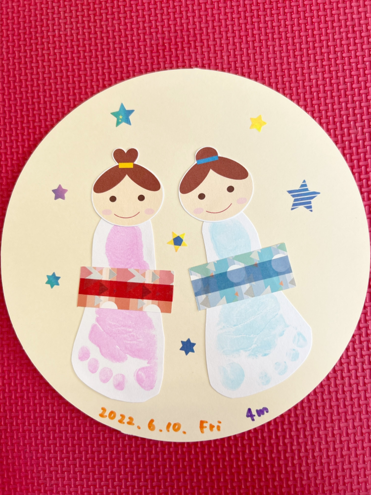 今日はみやうち支援センターの元利用者さんで手形足形アートの講師としてご活躍中の坪井さんに来て頂きました。足形を織姫と彦星に見立ててこんなに素敵な作品が完成しました。小さなあんよ可愛すぎです❤️良い記念になりましたね。(みゆき)